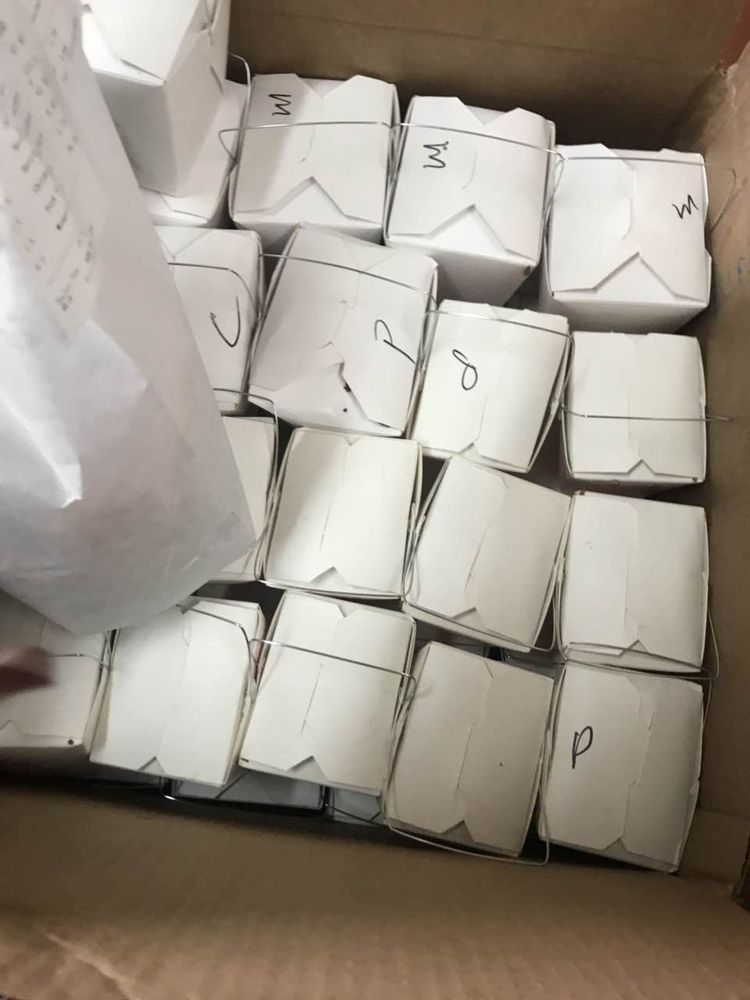 Chicken wings (3), crab Rangoon (2) egg roll (1), chicken kabob (2).